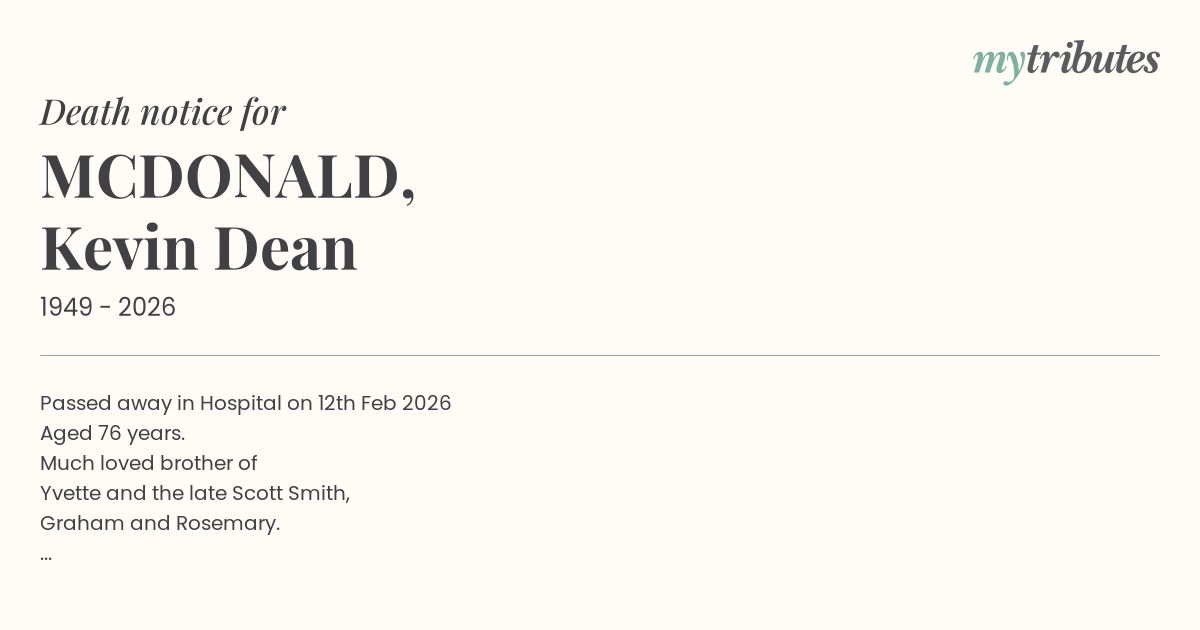 18°CPassed away in Hospital on 12th Feb 2026