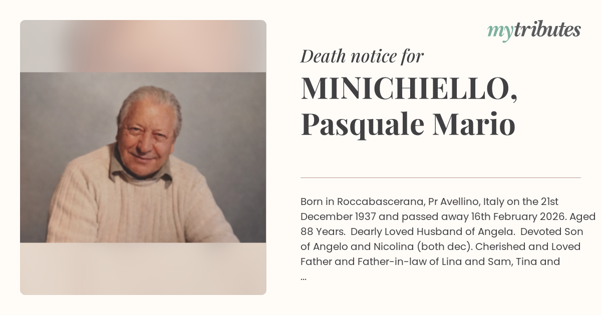 Proud and Adored Nonno of James, Sarah, Marc, Jesse, Nathan and Dayna and to his extended Grandchildren.