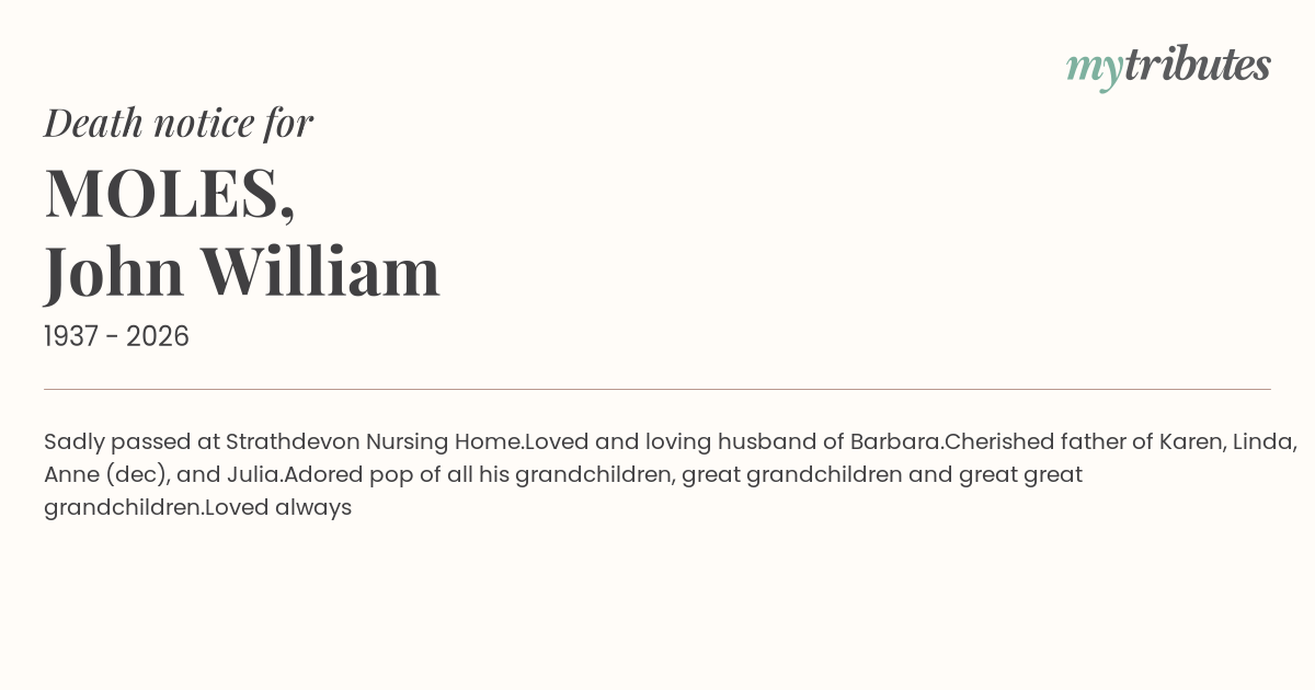 Cherished father of Karen, Linda, Anne (dec), and Julia.