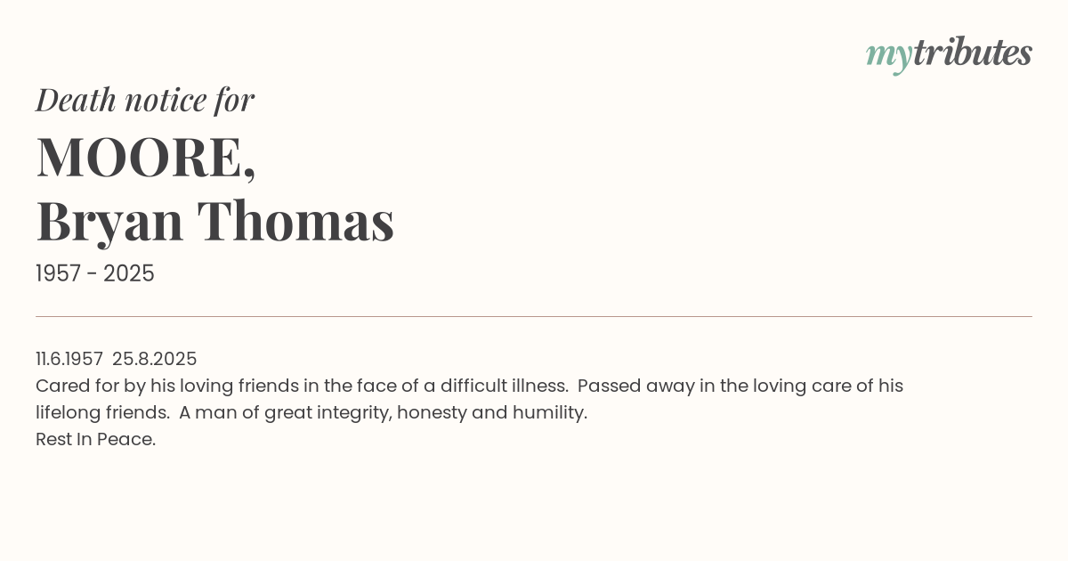 Cared for by his loving friends in the face of a difficult illness. Passed away in the loving care of his lifelong friends. A man of great integrity, honesty and humility.