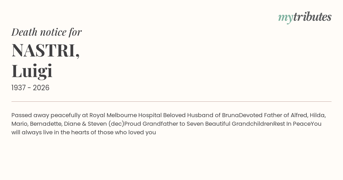 Devoted Father of Alfred, Hilda, Mario, Bernadette, Diane & Steven (dec)
