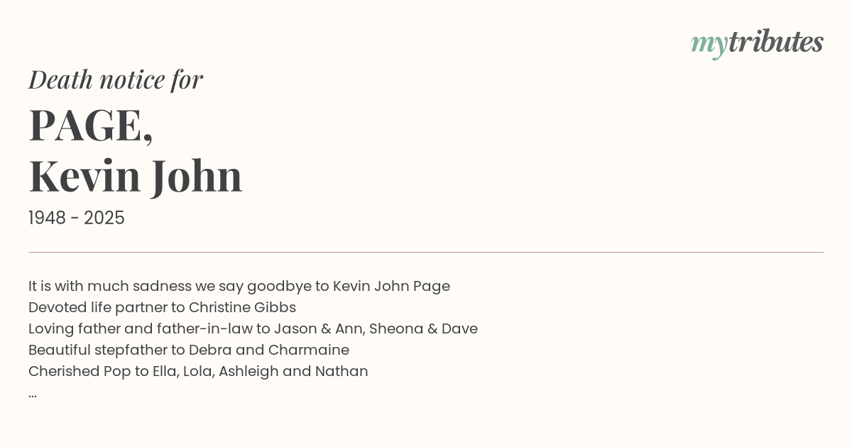 18°CIt is with much sadness we say goodbye to Kevin John Page