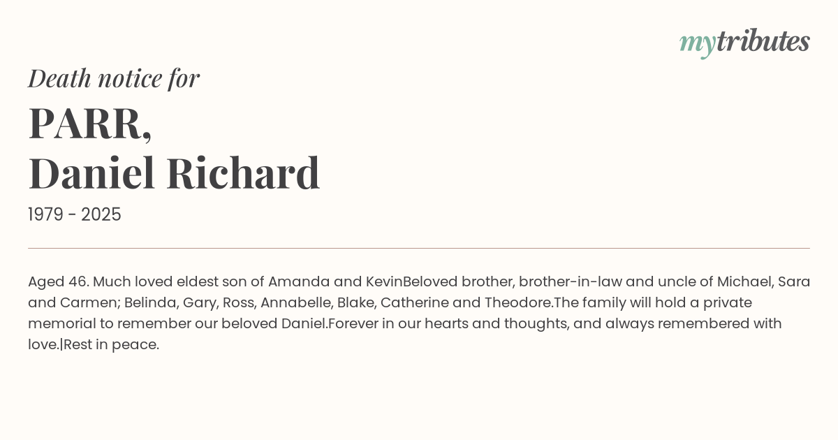 The family will hold a private memorial to remember our beloved Daniel.