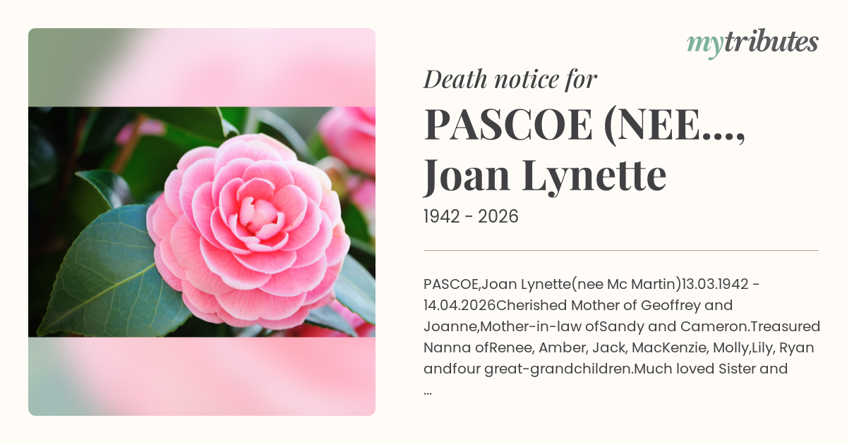 Cherished Mother of Geoffrey and Joanne,