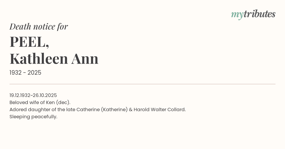 Adored daughter of the late Catherine (Katherine) & Harold Walter Collard.