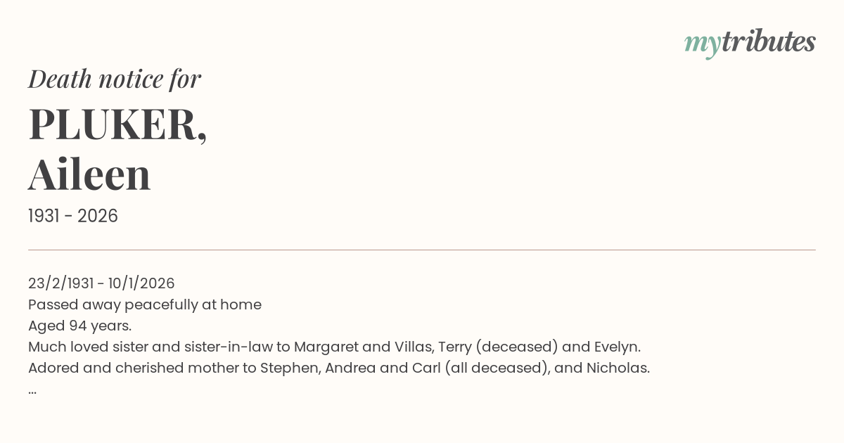 Adored and cherished mother to Stephen, Andrea and Carl (all deceased), and Nicholas.