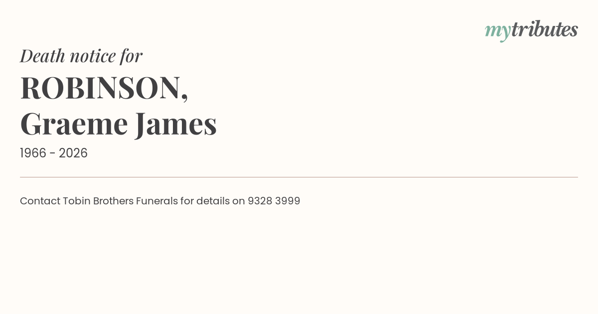 18°CContact Tobin Brothers Funerals for details on 9328...