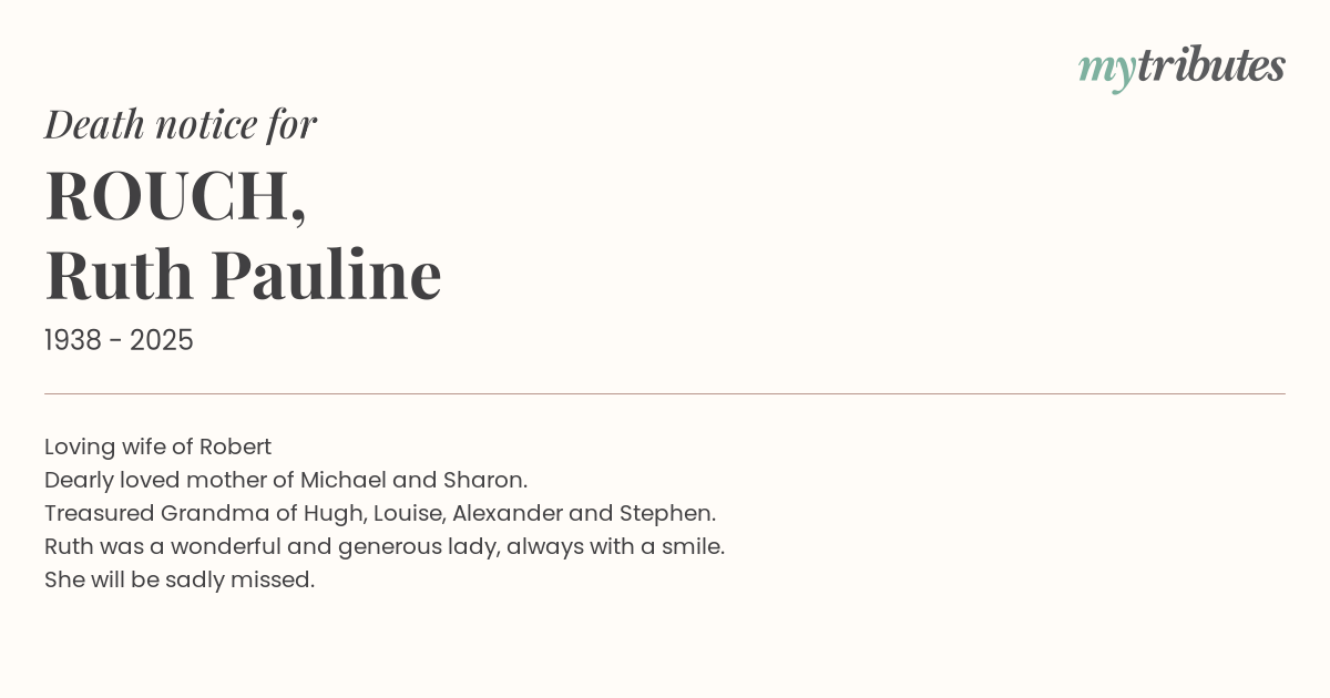 Ruth was a wonderful and generous lady, always with a smile.
