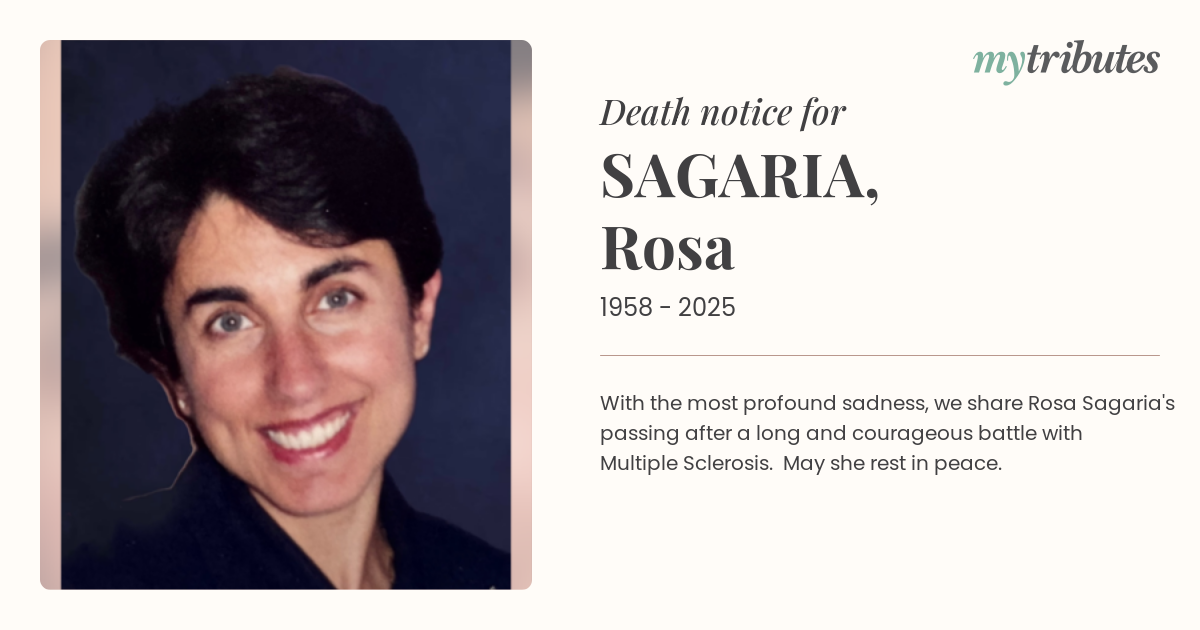 18°CWith the most profound sadness, we share Rosa Sagaria's passing after a long and courageous battle with Multiple Sclerosis. May she rest in peace.