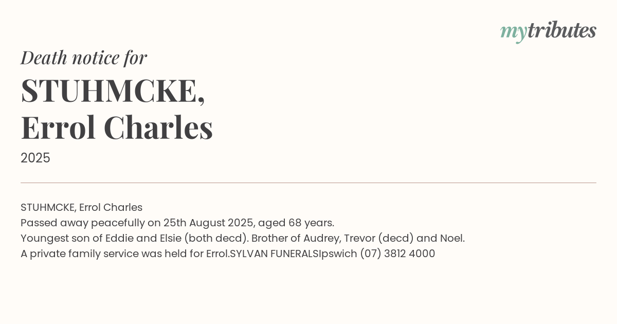 Passed away peacefully on 25th August 2025, aged 68 years.
