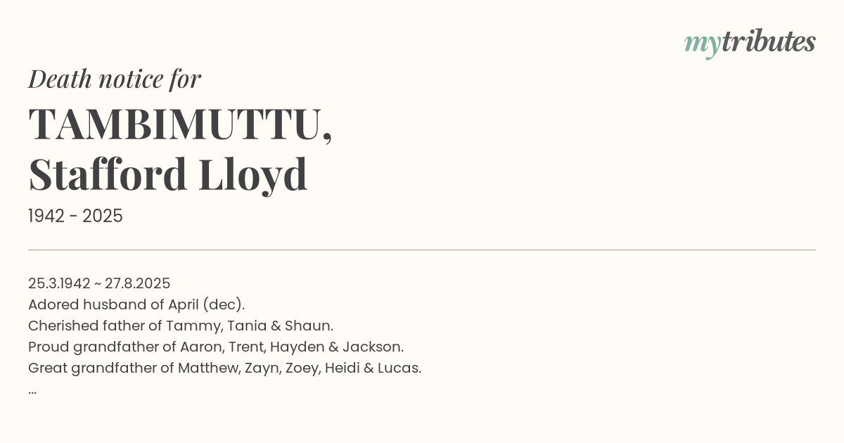 Survived by his brothers and sister Winston, Karina & Nihal.