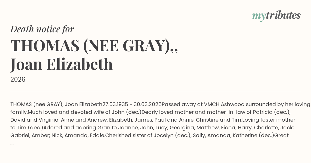 18°CTHOMAS (nee GRAY), Joan Elizabeth