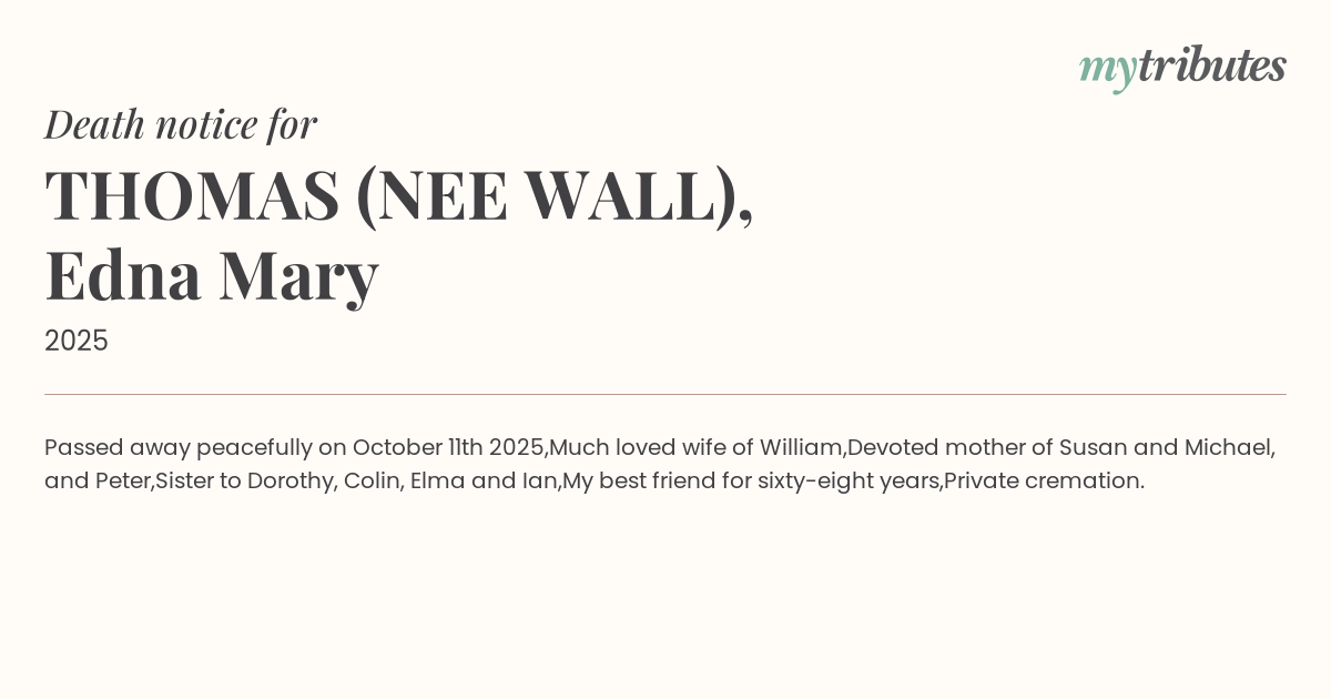 18°CPassed away peacefully on October 11th 2025,