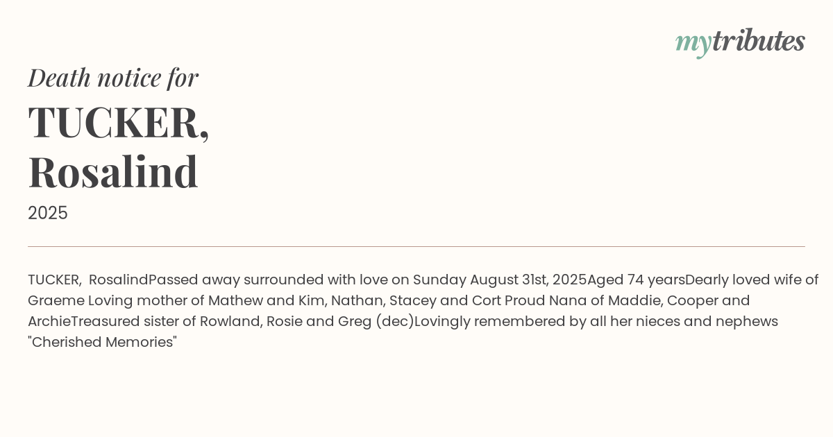 Treasured sister of Rowland, Rosie and Greg (dec)