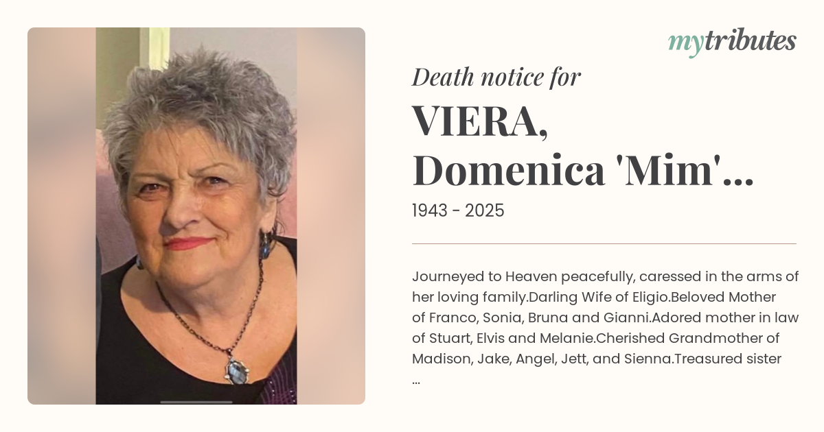 Beloved Mother of Franco, Sonia, Bruna and Gianni.