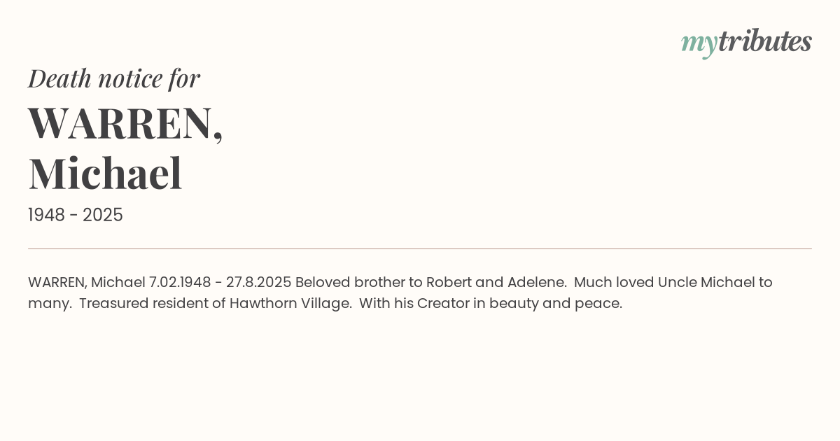 Much loved Uncle Michael to many.