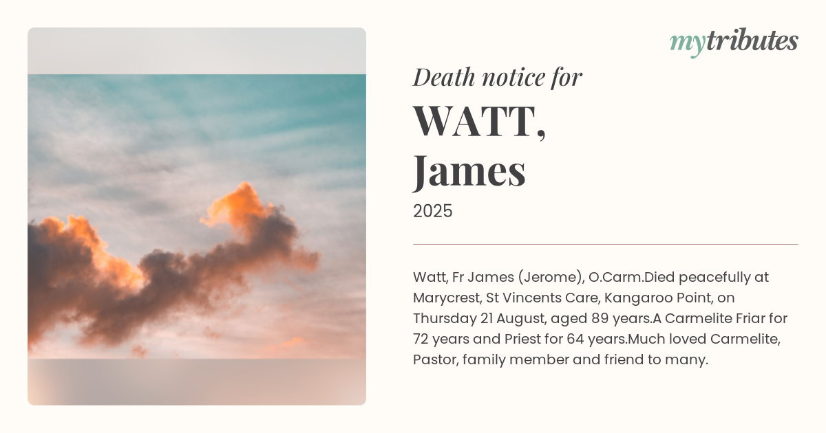 Died peacefully at “Marycrest”, St Vincent’s Care, Kangaroo Point, on Thursday 21 August, aged 89 years.