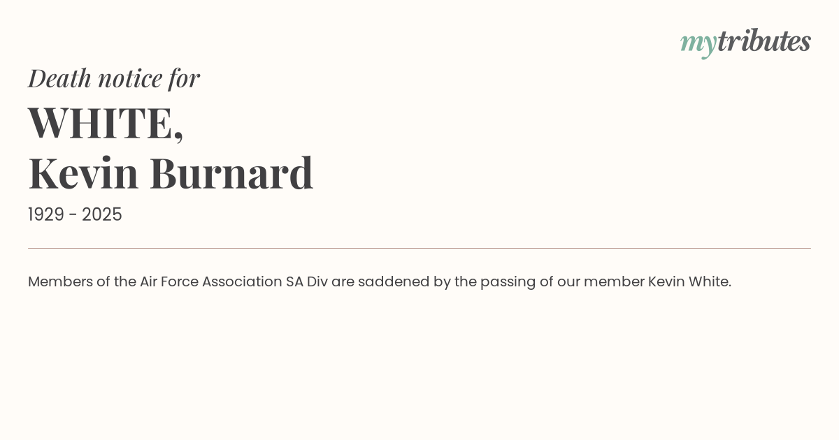 Members of the Air Force Association SA Div are saddened by the passing of our member Kevin White.