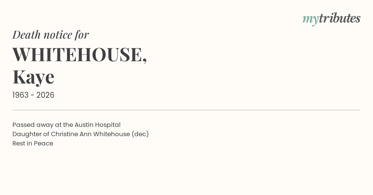 Daughter of Christine Ann Whitehouse (dec)