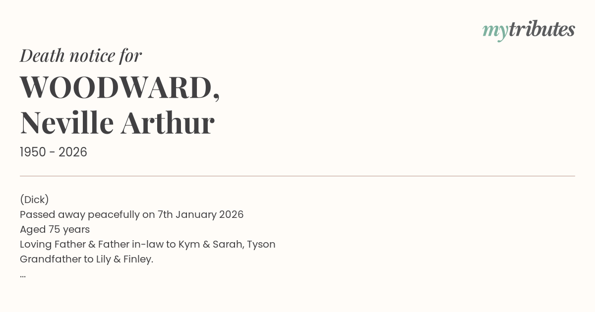 Passed away peacefully on 7th January 2026