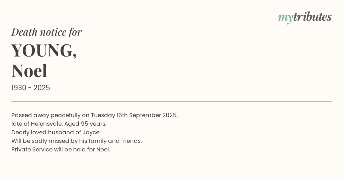 18°CPassed away peacefully on Tuesday 16th September 2025,