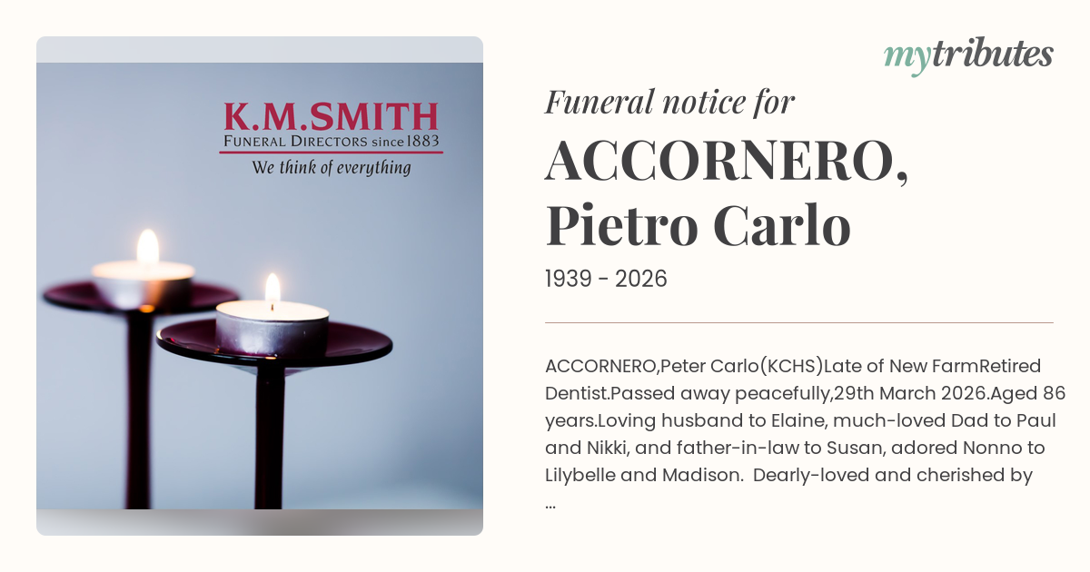 Loving husband to Elaine, much-loved Dad to Paul and Nikki, and father-in-law to Susan, adored Nonno to Lilybelle and Madison. Dearly-loved and cherished by his extended family and friends.