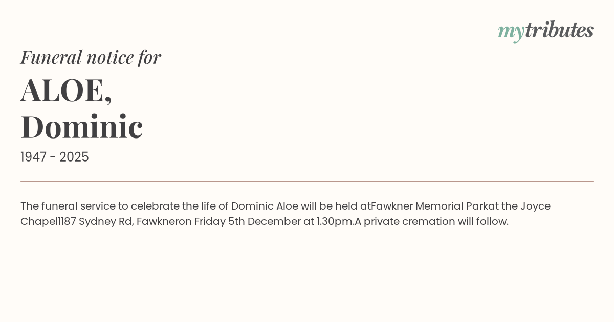 Dominic Aloe will be held at