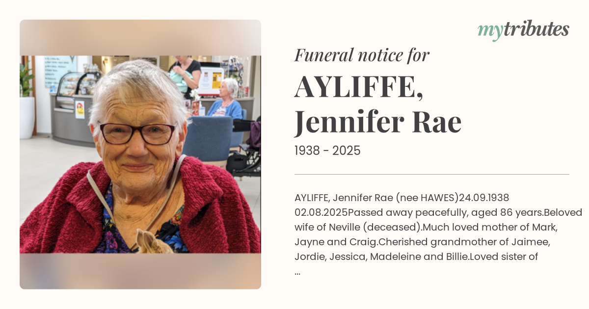 18°CAYLIFFE, Jennifer Rae (nee HAWES)