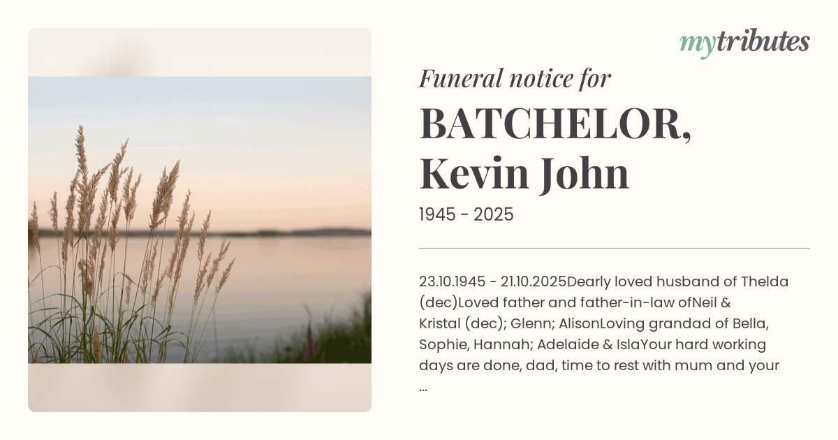 Family and friends of Kevin are warmly invited to attend a service to celebrate his life, to be held on Saturday 25th October 2025, at
