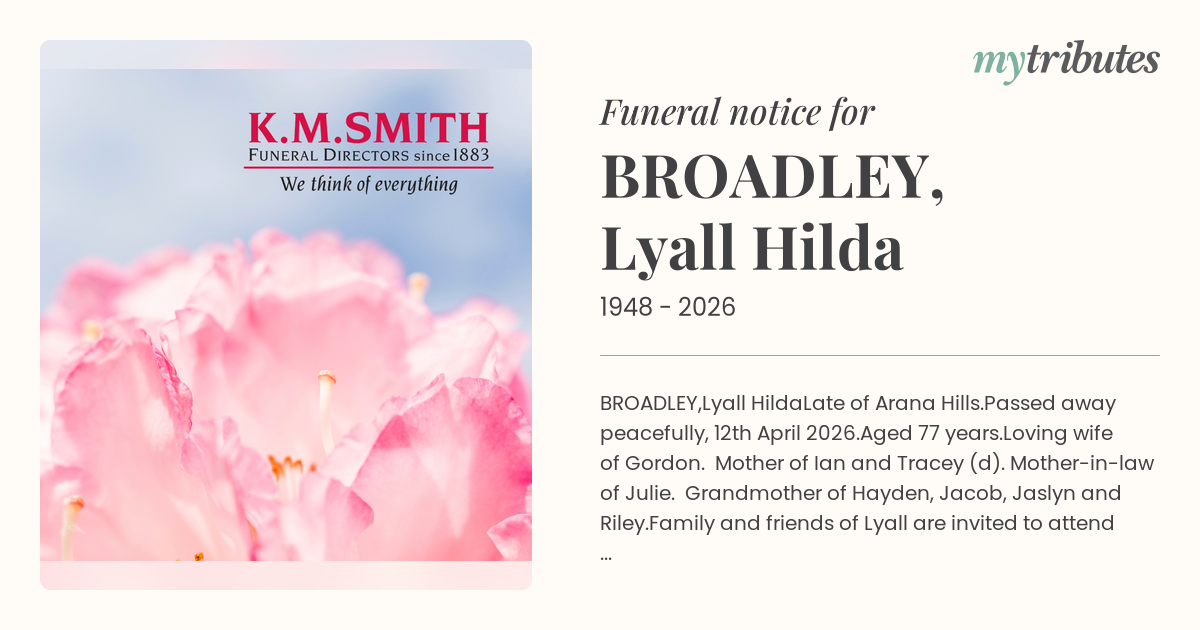 Family and friends of Lyall are invited to attend a Celebration of Life in Lakeview Chapel, Albany Creek Memorial Park, 400 Albany Creek Road, on Wednesday, 22nd April, commencing at 12.30 p.m.
