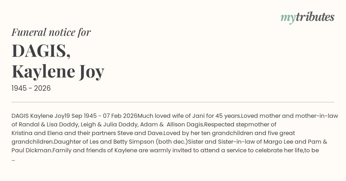 Family and friends of Kaylene are warmly invited to attend a service to celebrate her life,