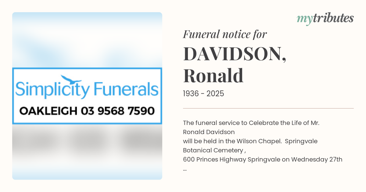 18°CThe funeral service to Celebrate the Life of Mr. Ronald Davidson