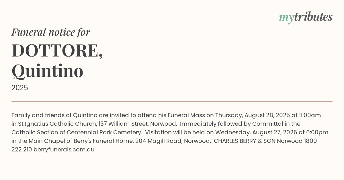 18°CFamily and friends of Quintino are invited to attend his Funeral Mass on