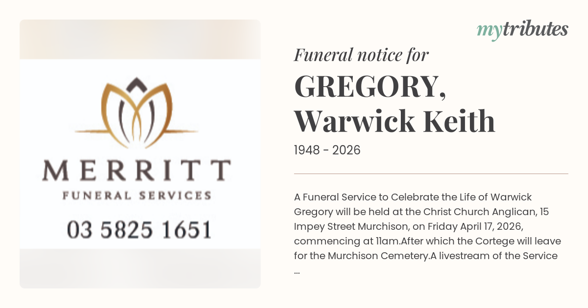 18°CA Funeral Service to Celebrate the Life of Warwick Gregory