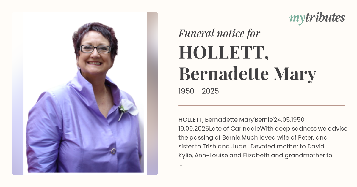 Family and friends are warmly invited to celebrate Bernie’s life at 11:00am, Thursday 2nd October 2025 at