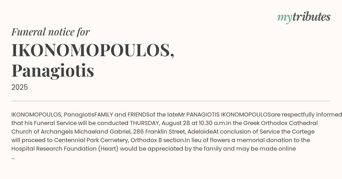 are respectfully informed that his Funeral Service will be conducted