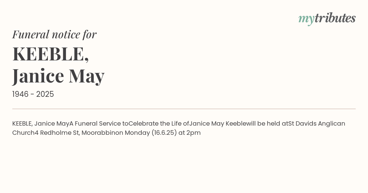 KEEBLE, Janice May