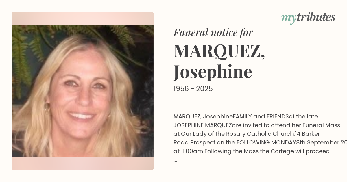 are invited to attend her Funeral Mass at Our Lady of the Rosary Catholic Church,