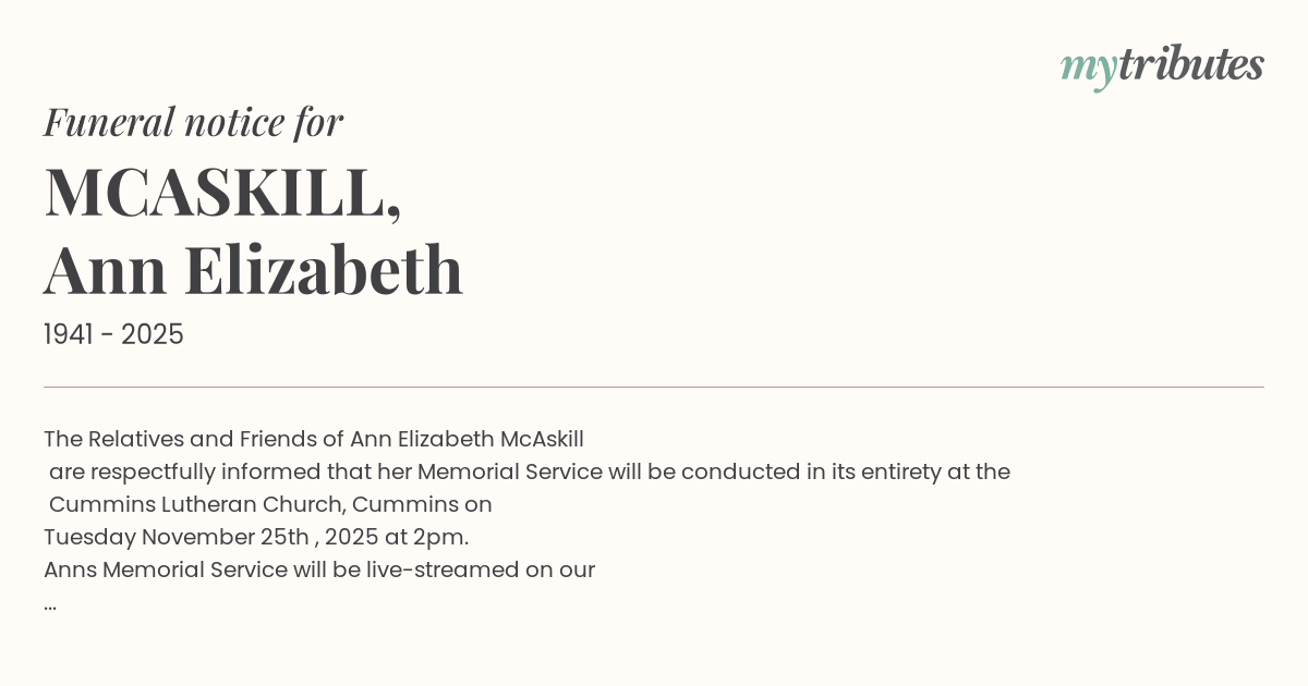 18°CThe Relatives and Friends of Ann Elizabeth McAskill