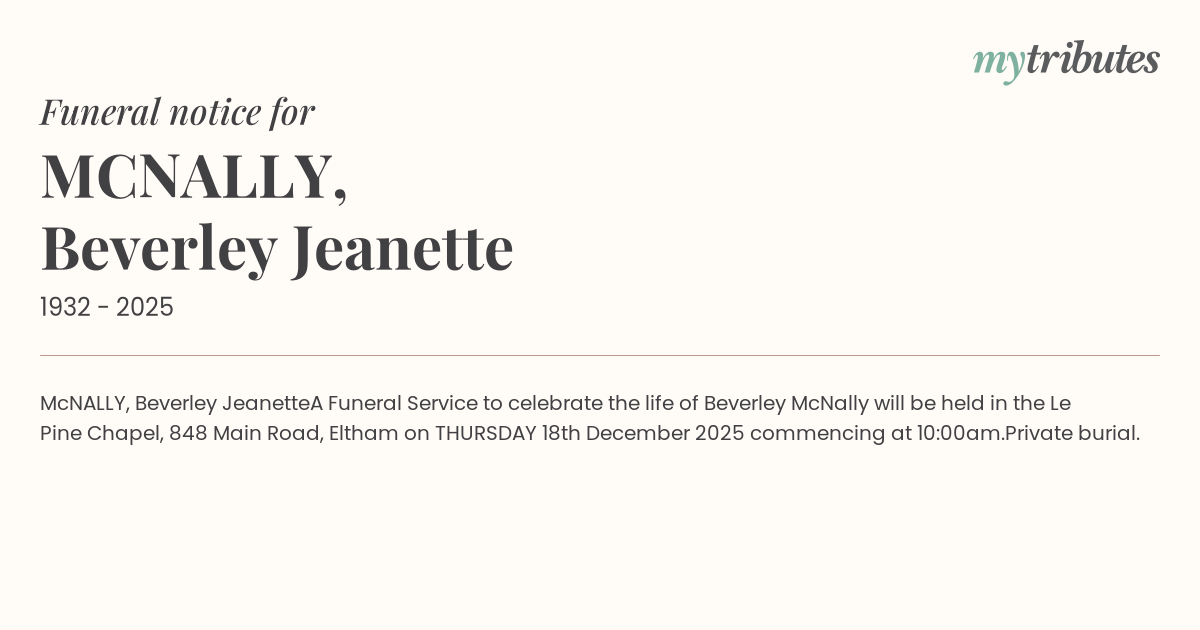 A Funeral Service to celebrate the life of Beverley McNally