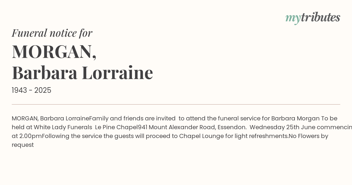 To be held at White Lady Funerals Le Pine Chapel