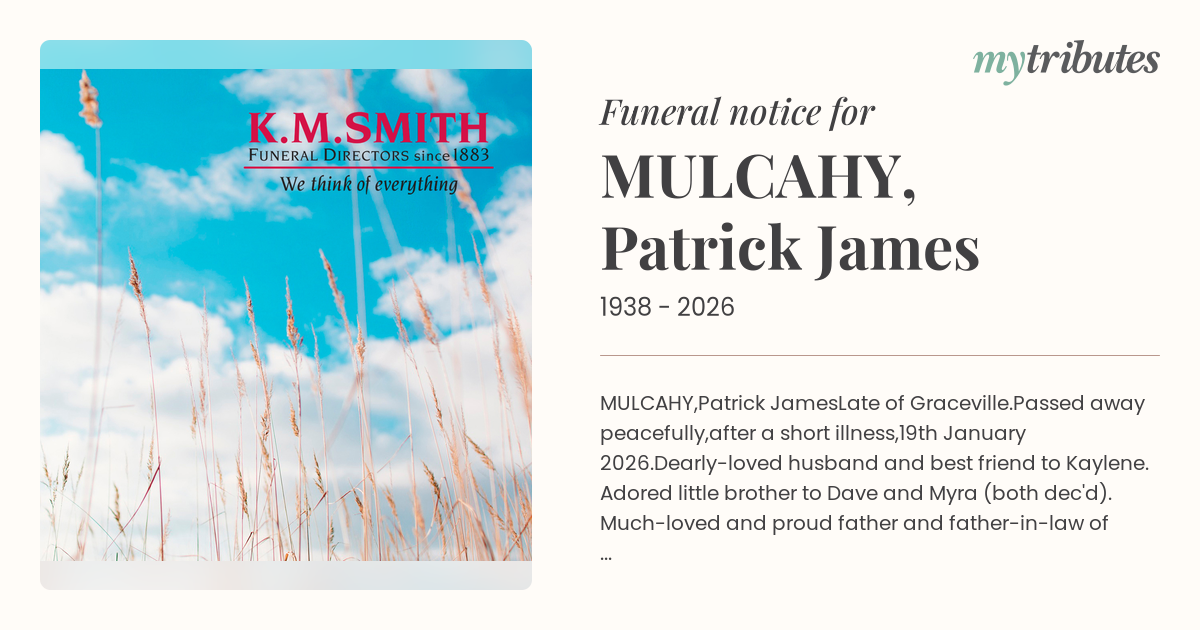 Family and friends are invited to attend a funeral service in Christ The King Catholic Church, 12/14 Churchill Street, Graceville, on Wednesday, 28th January, commencing at 11.00 a.m.