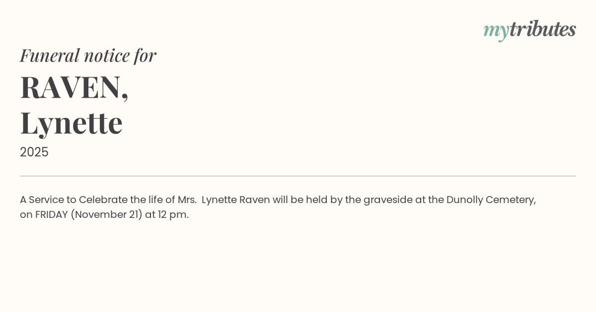 18°CA Service to Celebrate the life of Mrs. Lynette Raven