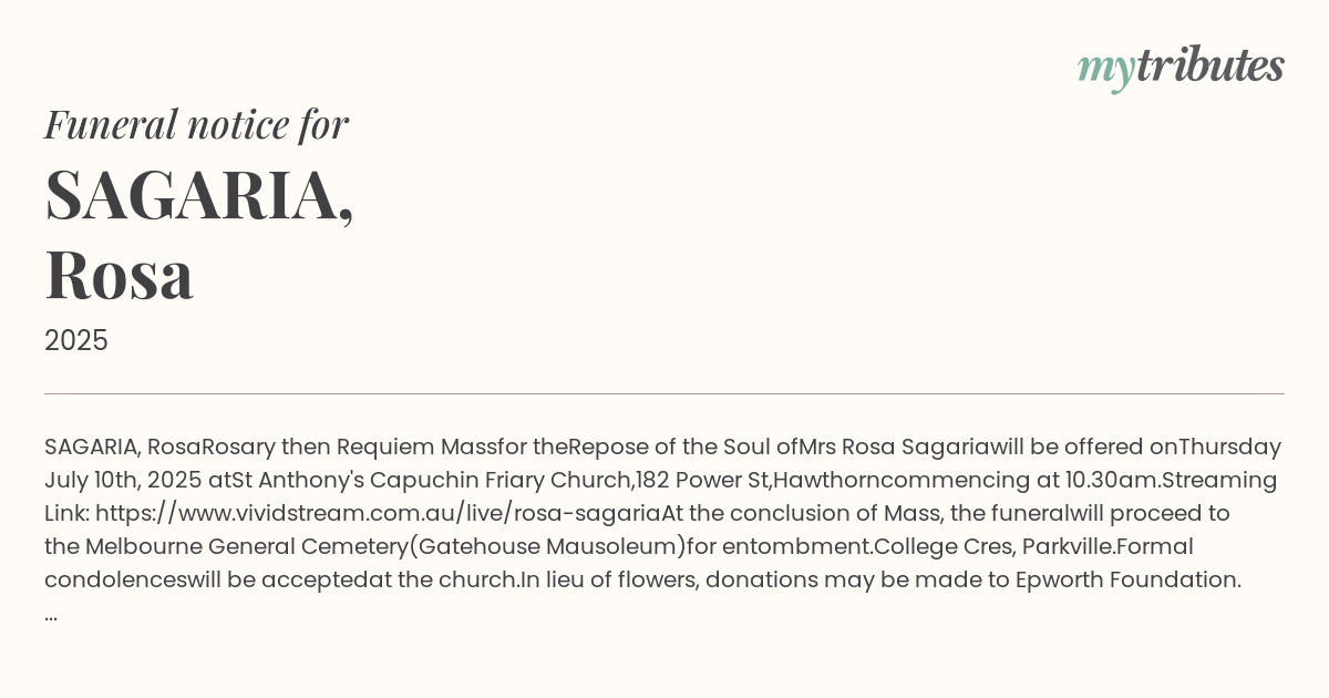 Streaming Link: https://www.vividstream.com.au/live/rosa-sagaria