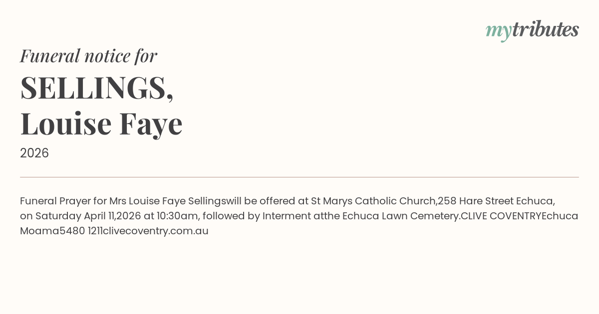 18°CFuneral Prayer for Mrs Louise Faye Sellings
