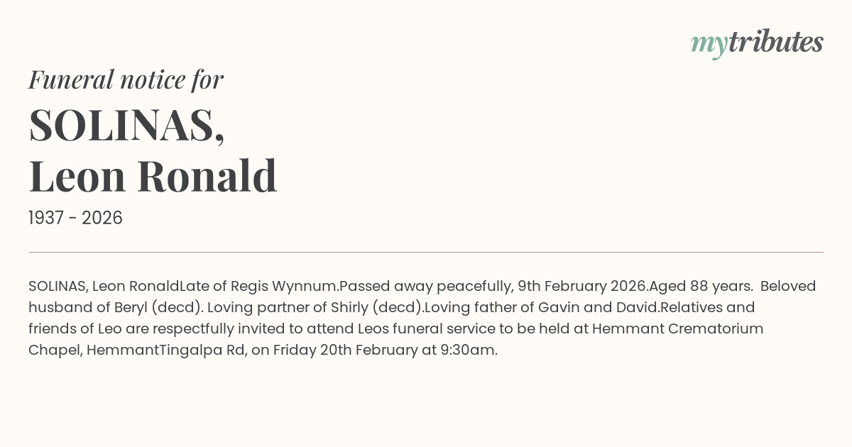 Relatives and friends of Leo are respectfully invited to attend Leo’s funeral service to be held at Hemmant