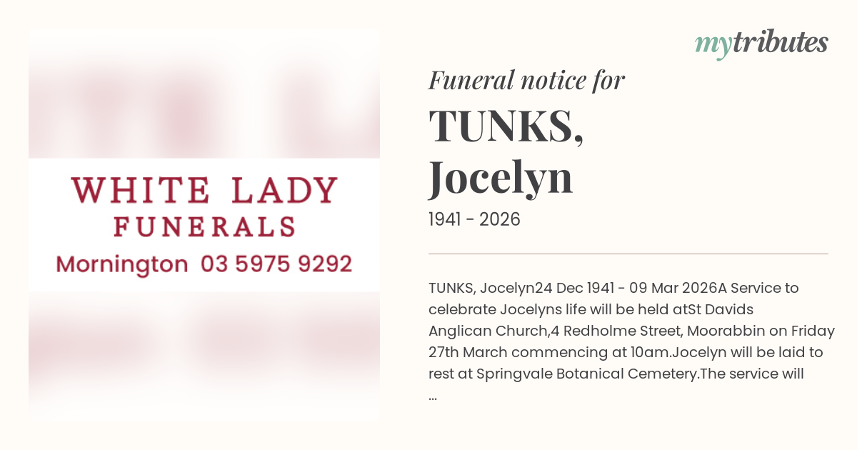 Jocelyn will be laid to rest at Springvale Botanical Cemetery.