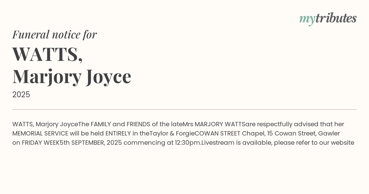 Funeral by : Taylor & Forgie: Cowan Street Gawler Funerals