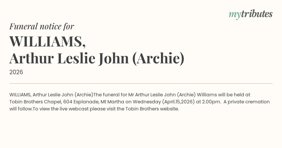 Mr Arthur Leslie John (Archie) Williams
