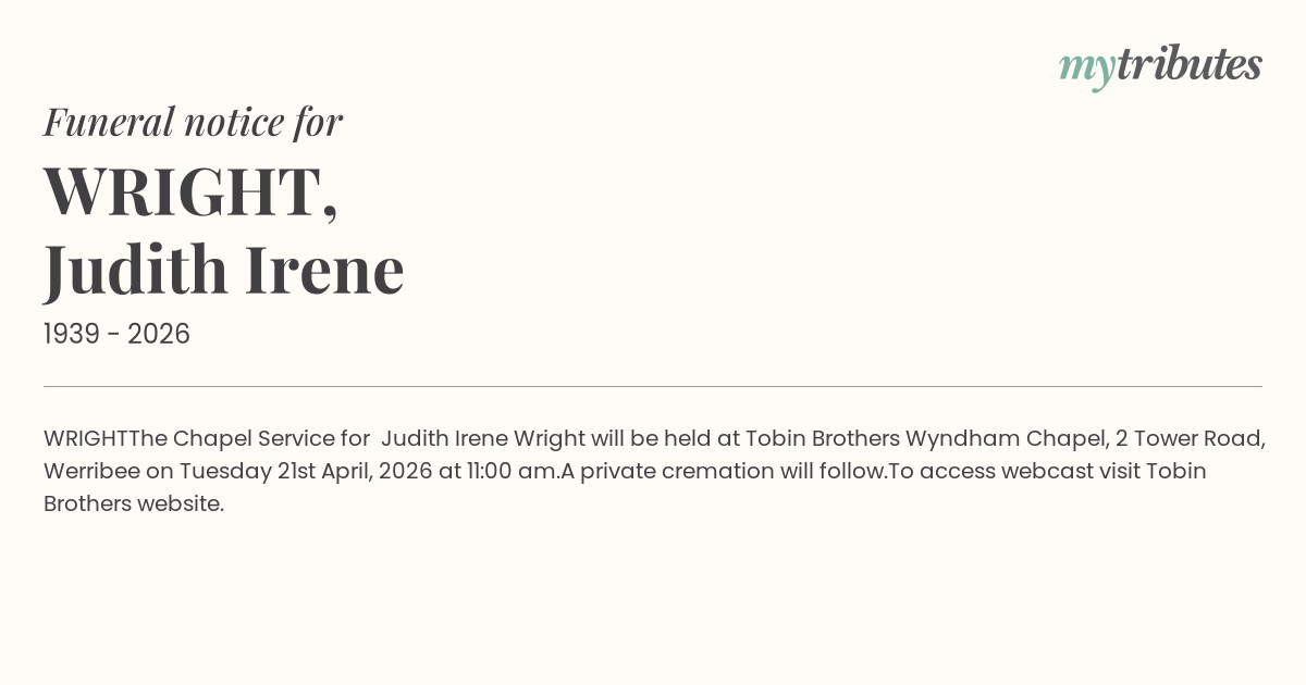 The Chapel Service for Judith Irene Wright